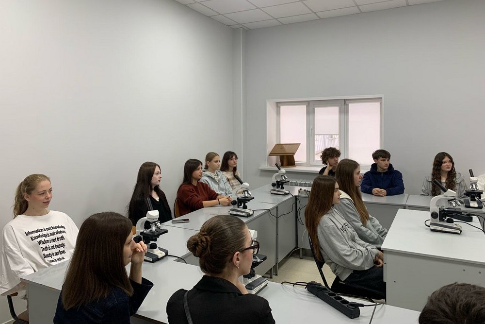 В институте фармации, химии и биологии на кафедре биологии прошёл захватывающий мастер-класс для школьников из лицея №32. И.о. заведующей кафедрой биологии, доцент Елена Хорольская провела увлекательное занятие по «Структурно-функциональной организации тканей и органов».