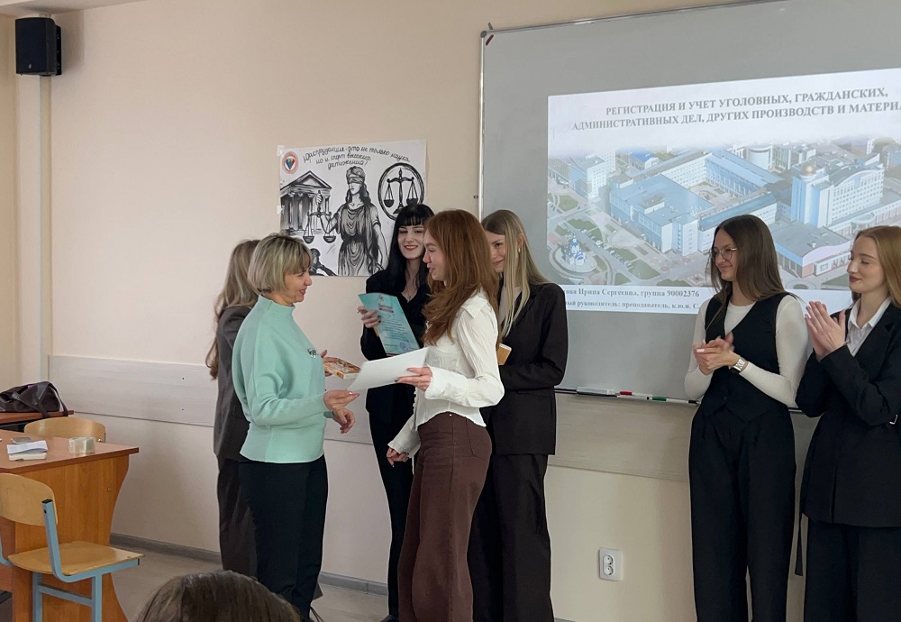 — «Лучшая презентация» — Ирина Чмутова, студентка группы 90002376, (тема работы «Регистрация и учет уголовных, гражданских, административных дел, других производств и материалов», научный руководитель Светлана Макштарева).