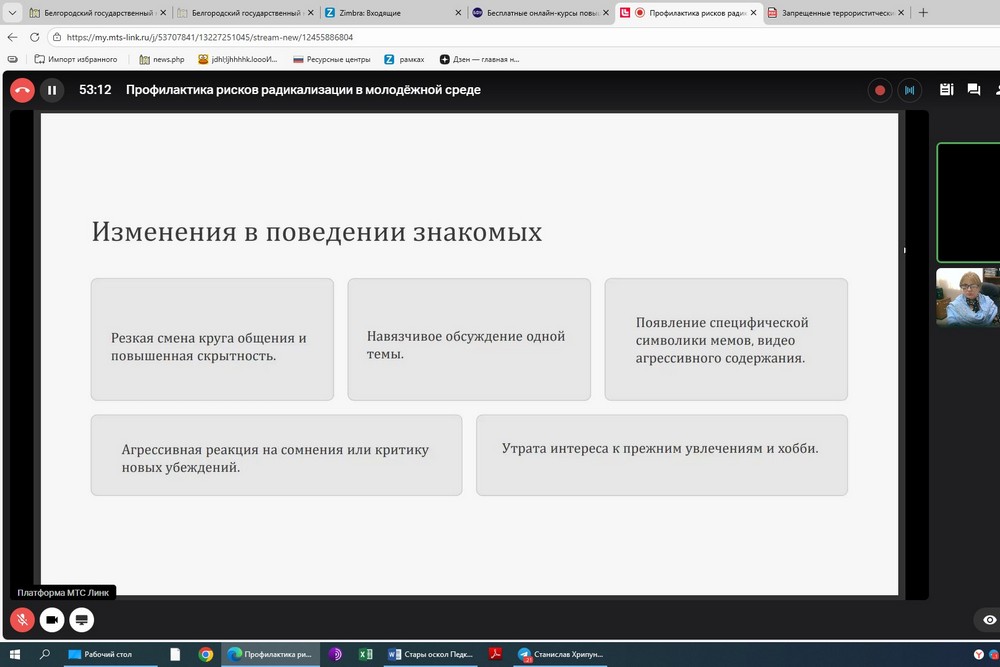Она объяснила типичные признаки радикализации, отметила, что почти никогда человек не доходит до крайностей сам, а поддаётся на уловки и провокации здлумышленников.