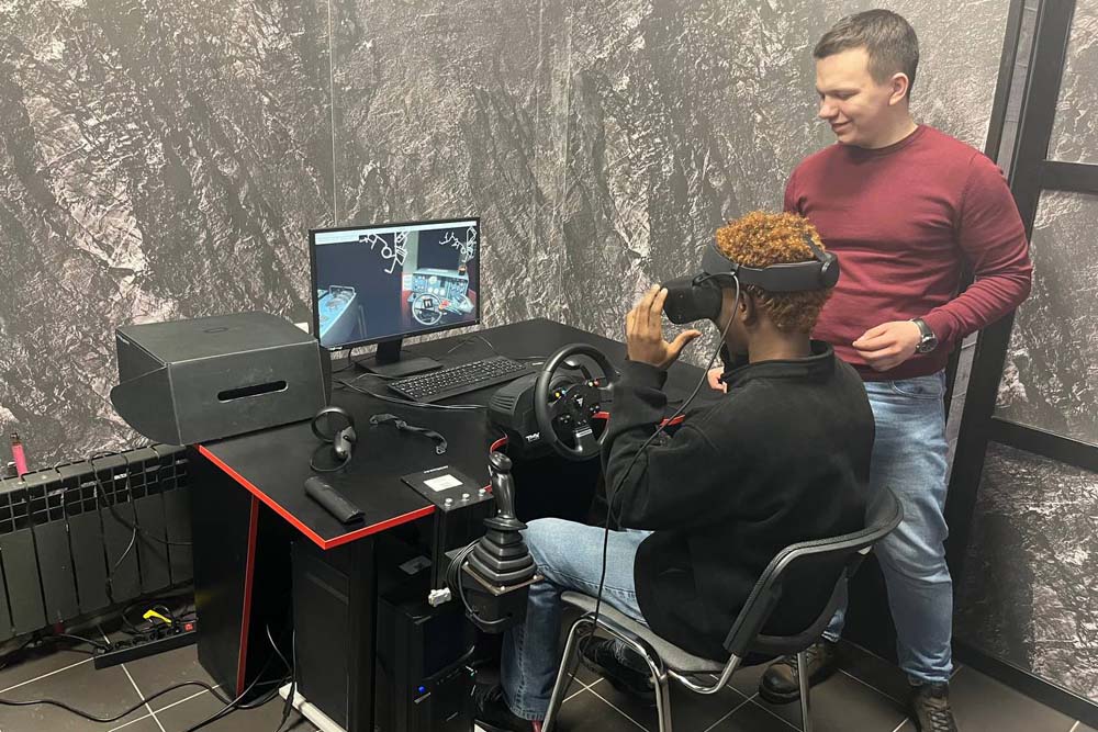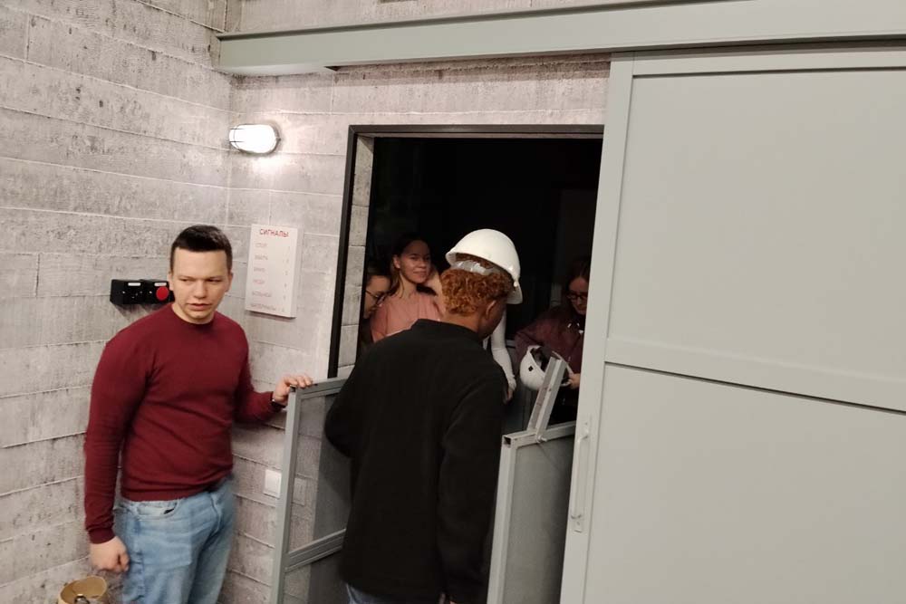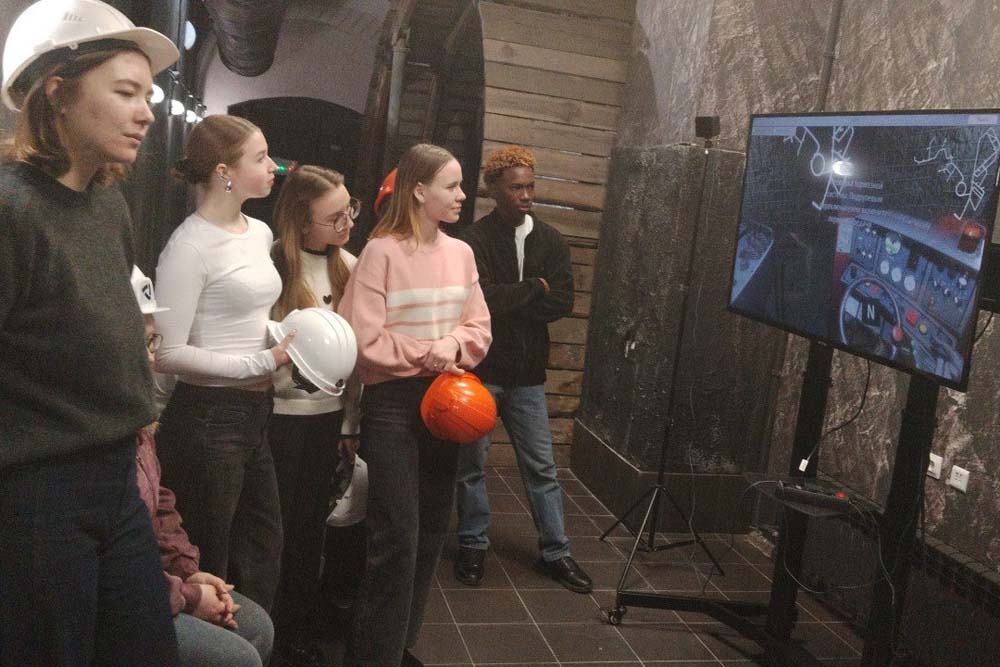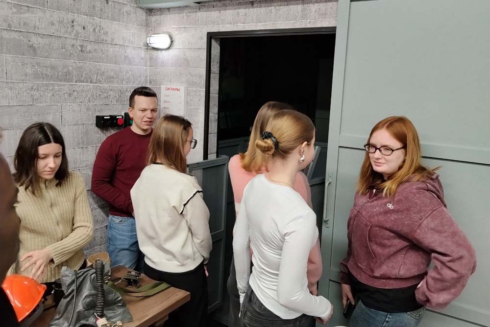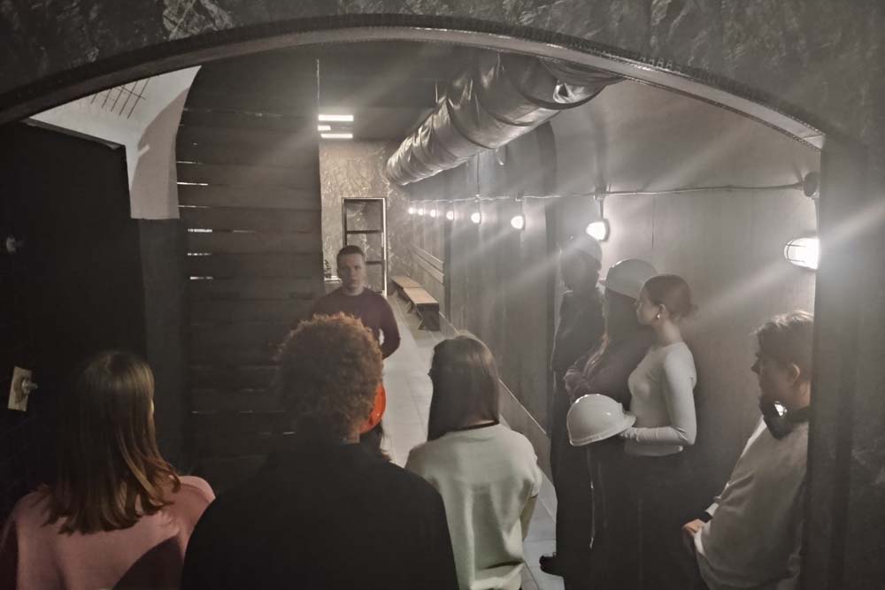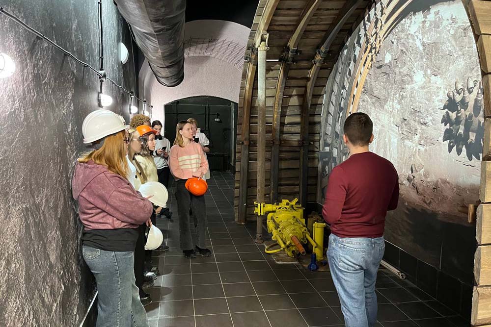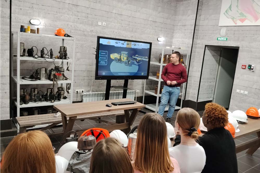 Встреча продолжилась посещением учебного полигона «ШАХТА» под руководством сотрудника центра прикладных исследований института наук о Земле Никиты Вереитина. Здесь состоялось обучение основам техники безопасности работы под землей, обзор основных средств техники и аппаратуры, применяемых в шахтных работах, захватывающее погружение в подземелье на грузовом шахтном лифте, путешествие по одному из «рукавов» карьерной разработки, а также проба сил на обучающем виртуальном симуляторе управлению подземных манипуляторов.